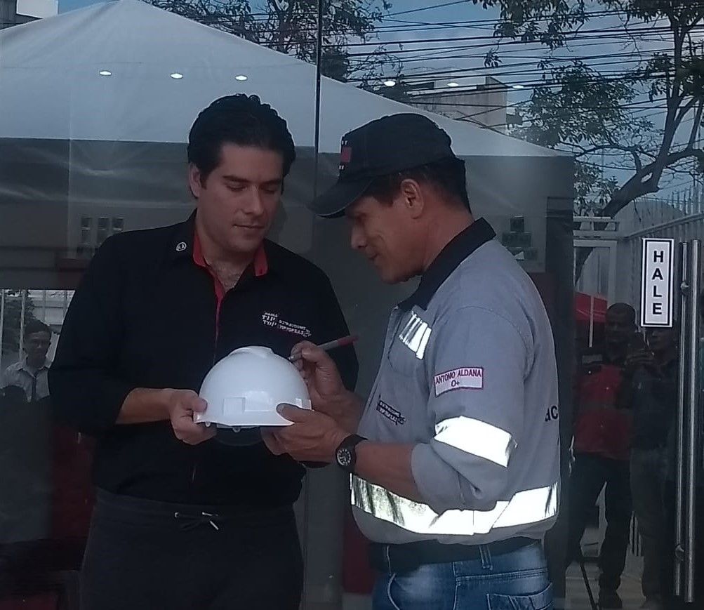 Un momento especial se vivió durante el acto protocolario de inauguración de la sede en Barranquilla, cuando el gerente llamó a funcionarios de las áreas técnicas, administrativa, de servicios y demás existentes en el organigrama institucional para que firmaran un casco de seguridad industrial, como símbolo de la participación, importancia y reconocimiento a la labor que cada uno de ellos realiza en la empresa.