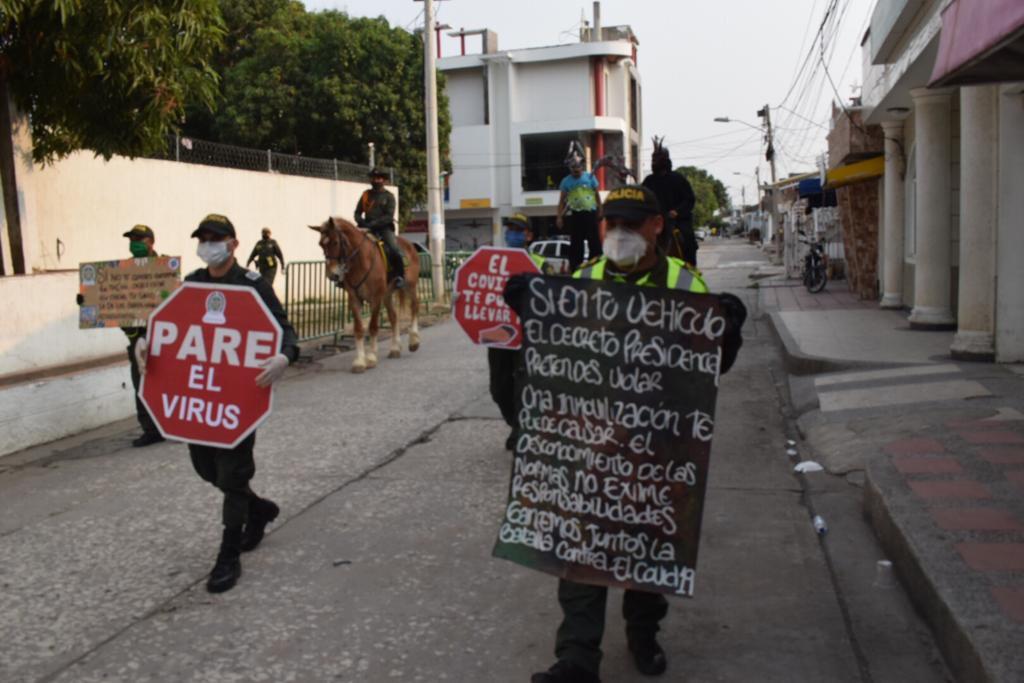 Durante este periodo se han implementado el perifoneo invitando a la comunidad a no salir de casa, mujeres policías fabrican tapabocas para ser distribuidos a población vulnerable, acompañamiento a la entrega de 133.575 mercados (113.958 gobernación, 19.617 alcaldías y 2.000 donados por la Policía), la creación de 2 grupos anti-vandálicos, servicio permanente en las 32 tiendas de cadena, en total se han desarrollado 255 campañas preventivas. Además, se han impuesto 2.777 comparendos por violación al decreto 457 y se han inmovilizado 117 vehículos.