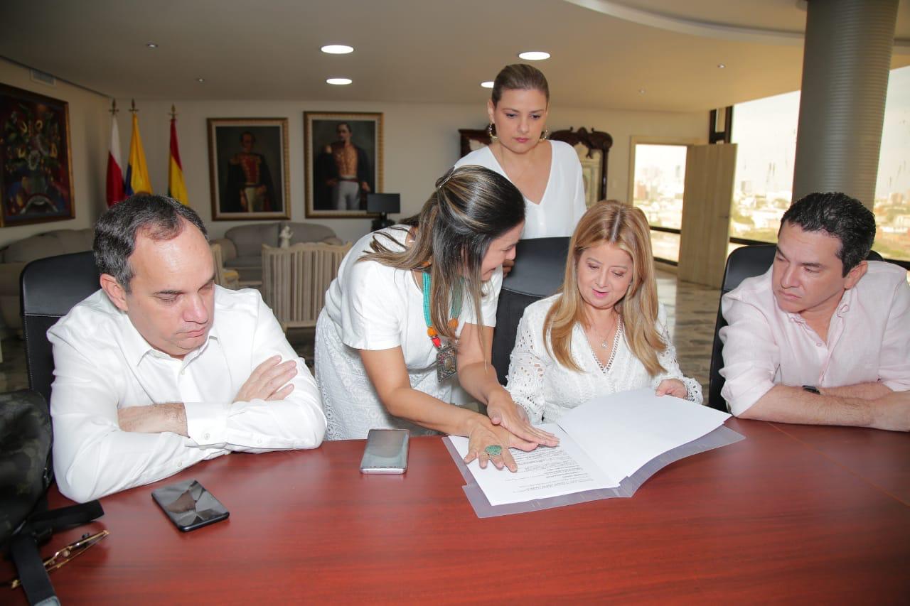 También en horas de la mañana, la mandataria se reunió con miembros de su gabinete en la sala de juntas Luis Carlos Galán, del piso 11 de la gobernación, y allí fue invitada por la comisión de diputados encargados de acompañarla hasta las instalaciones de la Asamblea, en este caso, Lourdes López Flores (Liberal) Federico Ucrós (Conservador) y Gonzalo Baute (Cambio Radical), para la protocolización del inicio de su mandato.