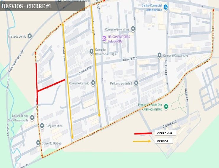 La Secretaría Distrital de Tránsito y Seguridad Vial informa a la ciudadanía que se ha programado un cierre temporal en un sector de Alameda del Río, desde este lunes 24 de noviembre hasta el 31 de diciembre por trabajos de instalación de redes de drenaje de aguas lluvias, en los tramos de la calle 120 entre carreras 42B y 43,...